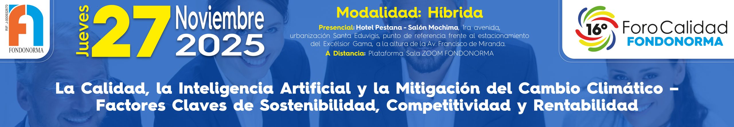 FONDONORMA tiene el placer de invitarle a participar en la Decimosexta Edición de su prestigioso FORO Calidad 2025, un evento que se consolida como el principal punto de encuentro para la excelencia, la normalización y la gestión de la calidad en el país.